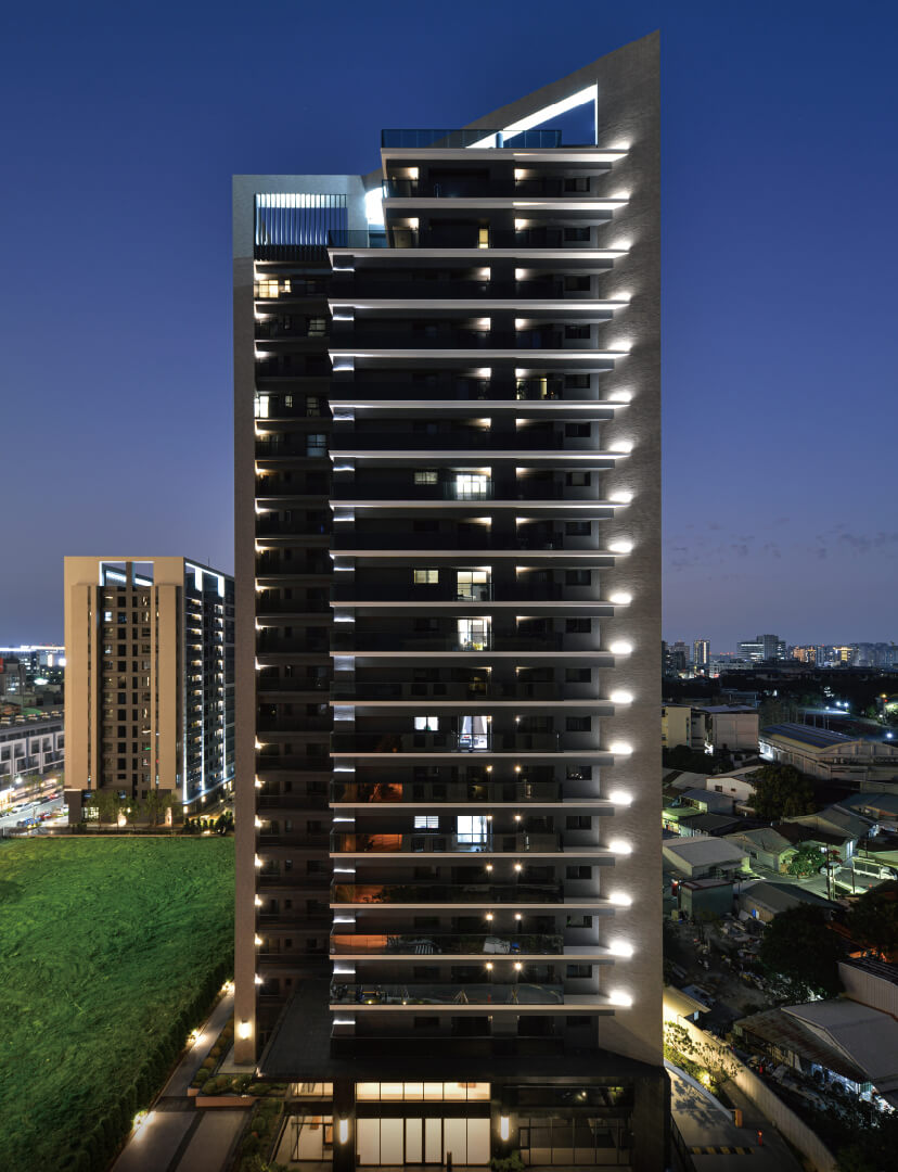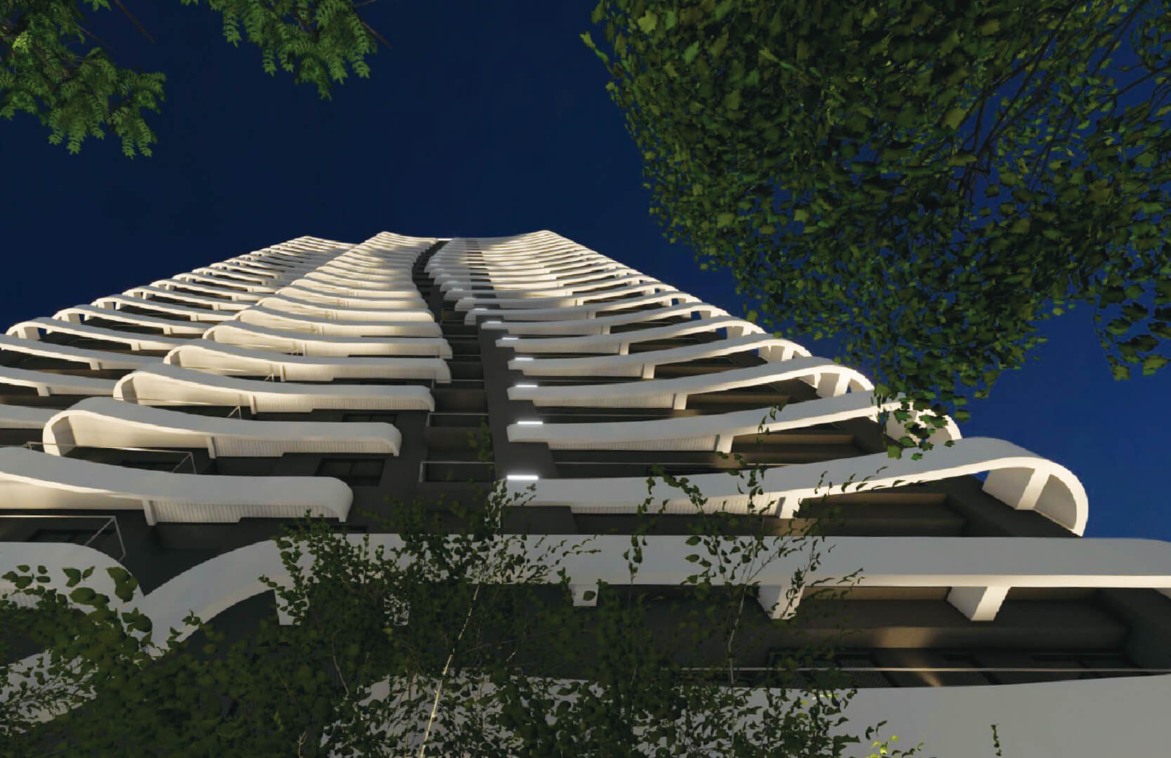 以雲波漣漪、韻律曲線之美,打破制式思考的視覺震撼!透過不斷重複線條,呼應大海連綿不絕的層次白浪,融合動態美感的建築質地,不僅賦予靜態的建築感性張力,更藉由律動的語彙,與環境對話、與自然感知連結,勾勒出更豐富多樣的建築時空光影與生活品味體驗。