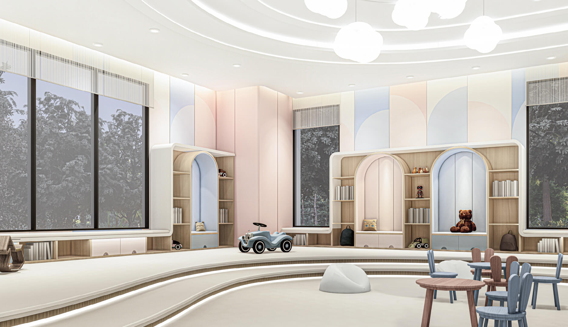 多功能接待廳透過分享與機能,成為社區互動的重心;自在遊戲的童樂空間,