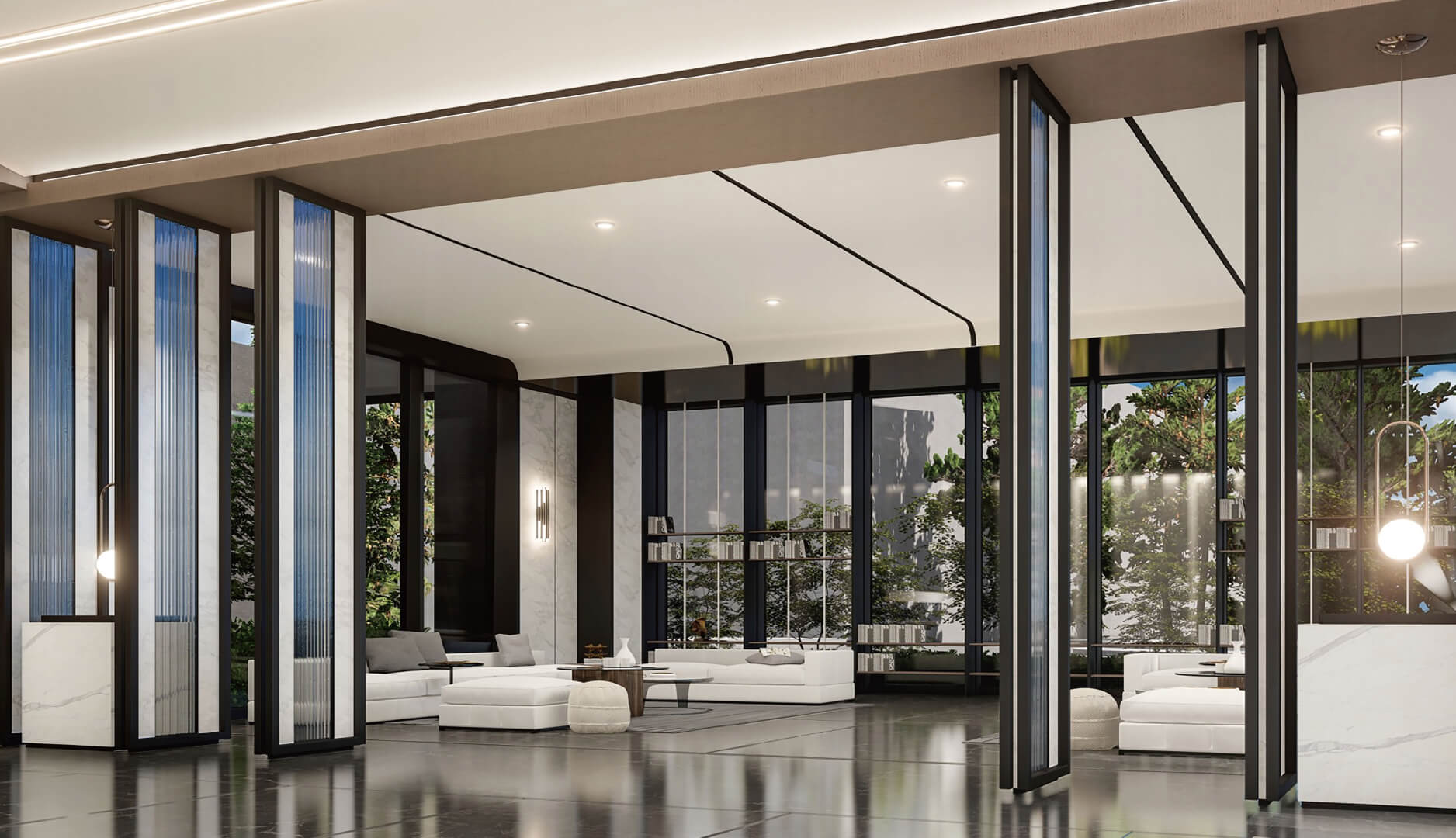 一座新東方敞闊門廳,流露美術館般的淳靜氛圍,成就回家禮賓完美過場。