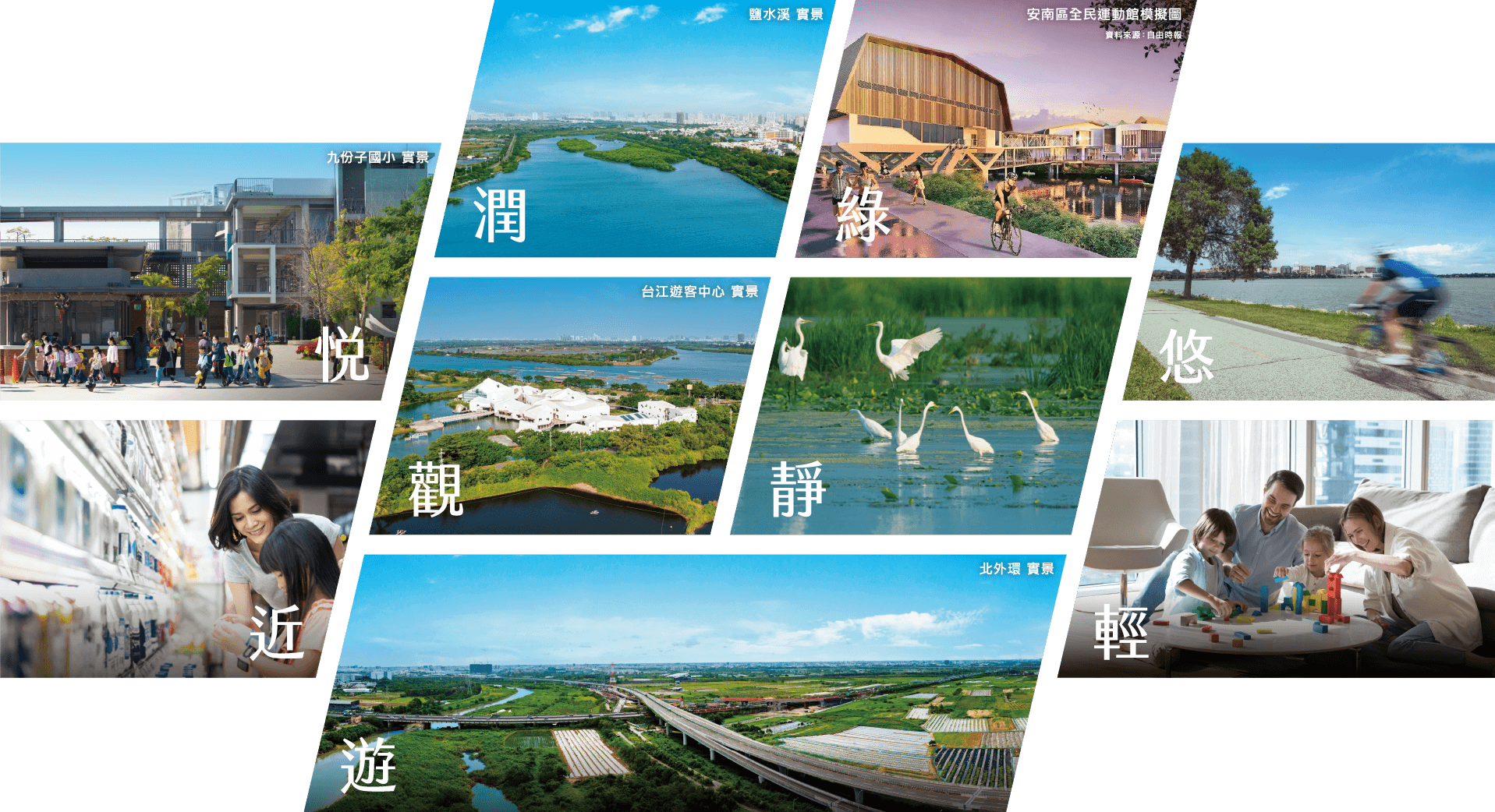 對位杜拜的Atlantis The Palm、舊金山的North Bay--唯有世界頂級生活,方能擁有一幅無法複製的湛藍海景。前庭,是台江國家公園與無邊際國際海景;後院,是九份子親水生態園區,以國家級規格擘劃世界級生活藍圖。